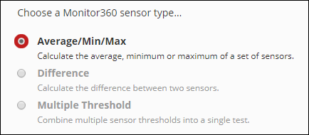 1. Under Choose a Monitor360 sensor type, select Average/Min/Max.