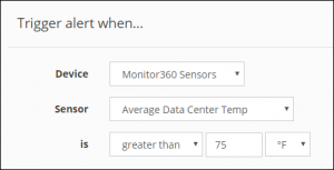 – In Sensor, select the sensor you’d like to add to your set. Here, we’re choosing Data Center-Temperature.