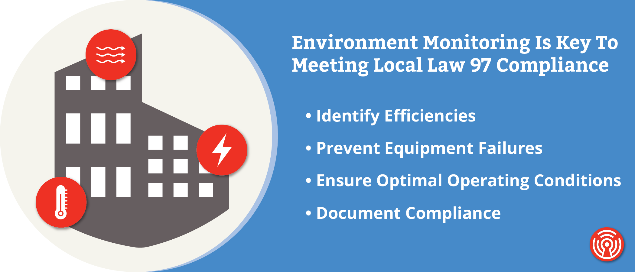 Proactive environment monitoring plays a crucial role in addressing the requirements of Local Law 97. By continuously tracking critical environmental parameters, such as temperature, humidity, heat index, dew point, particulate matter, air flow, power, water/flood and more, building owners and facilities managers can: