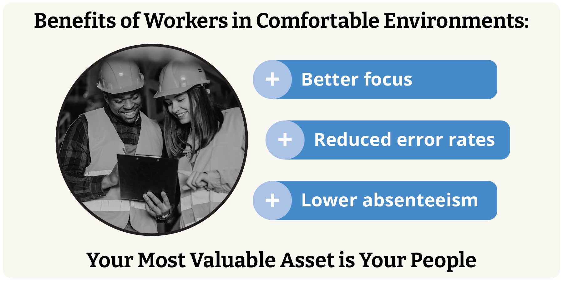 Indoor workers face their own set of compounded risks. Factories, warehouses and even offices can become dangerously hot while trapping pollutants that infiltrate from outside or generate internally. Outdoor smog and wildfire smoke seep indoors through ventilation systems, while higher indoor temperatures increase the release of volatile organic compounds from building materials. Poor ventilation allows CO2 buildup that impairs cognitive function, and increased humidity fosters mold growth. The result is a toxic combination that leads to headaches, fatigue and worsened respiratory issues.