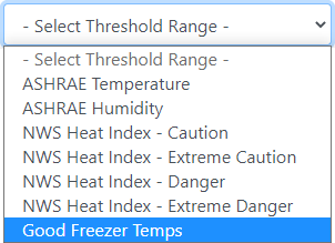 Now that you’ve saved a custom threshold range, you can graph it alongside your sensor data. When you go to the Sensor Data and Reports tab, you’ll see your new range populated in the Select Threshold Range drop-down menu, as shown below.