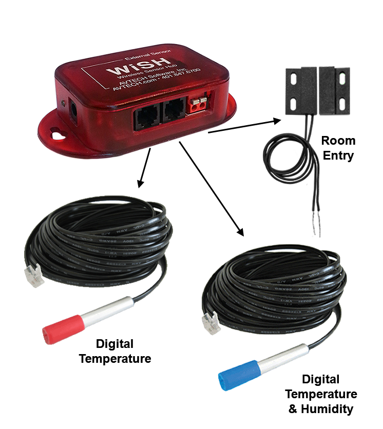 AVTECH offers several types of sensors: wireless, digital, switch, analog, and relay. Please select the tab below for an explanation of each type of sensor.