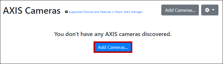 - Then select the Add Cameras button in the AXIS Cameras Inventory page.