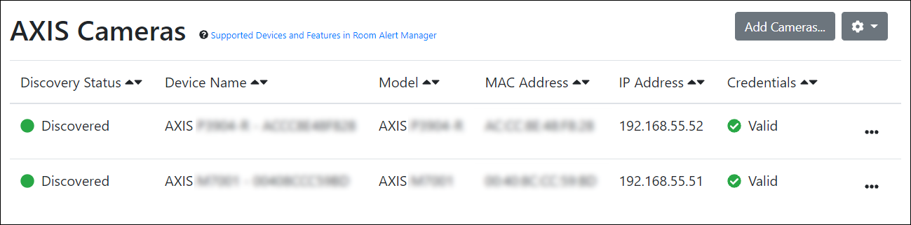 Discover your Axis network cameras in Room Alert Manager in order start capturing images and identifying motion.