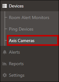 - In Room Alert Manager’s interface, navigate to Devices –> Axis Cameras.