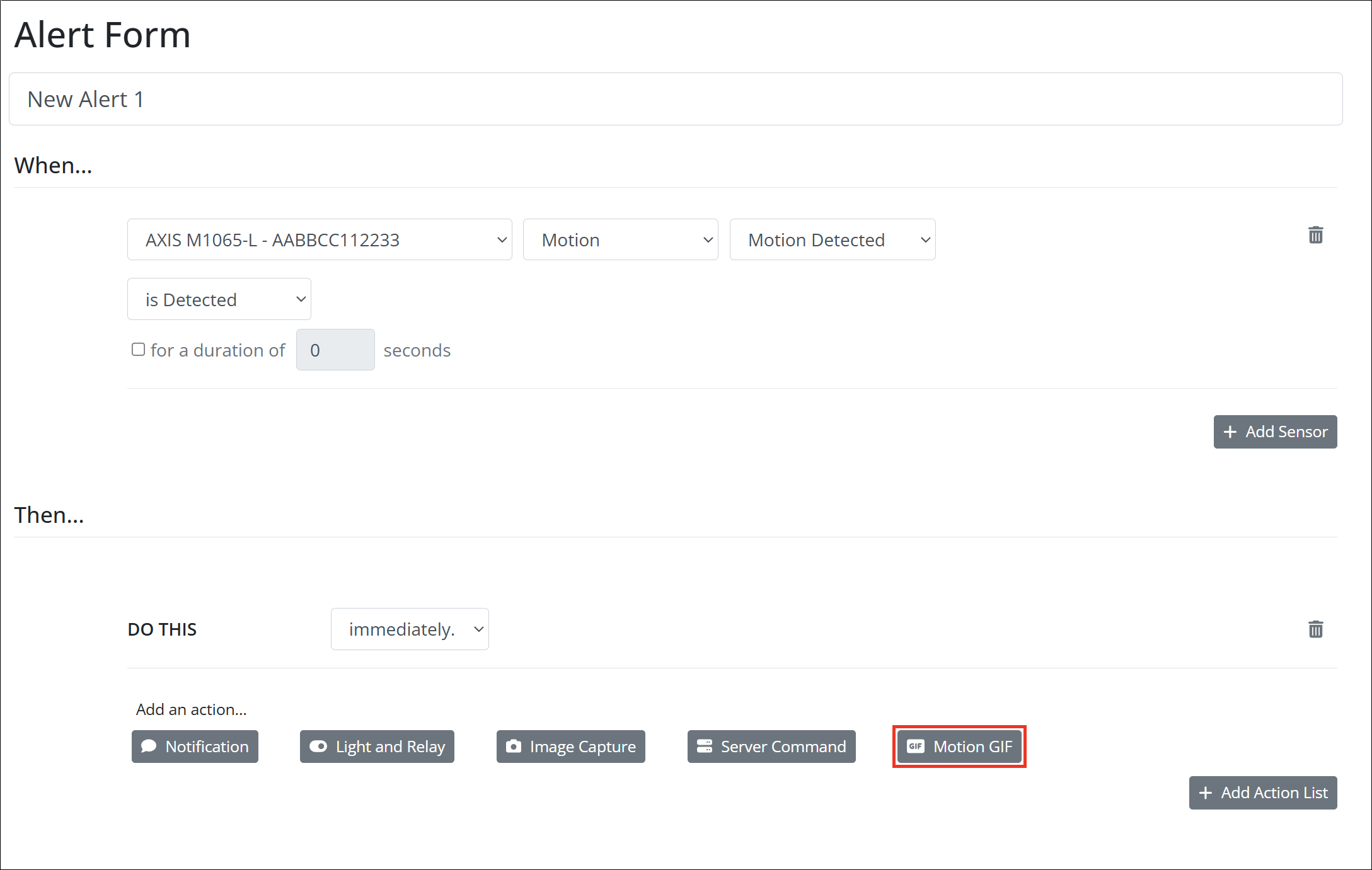 2. In the Then… section of your new alert, select Motion GIF to add a Motion GIF action.