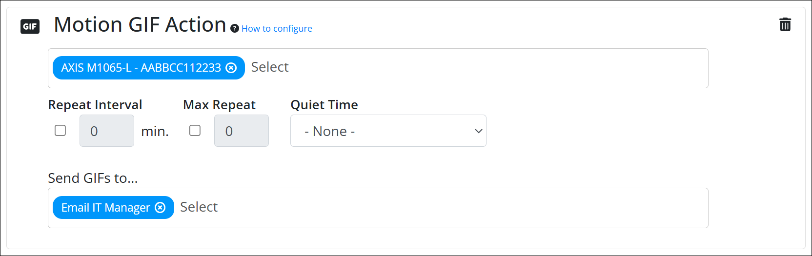 3. In the Motion GIF Action form, select the camera that you used for the alert threshold.