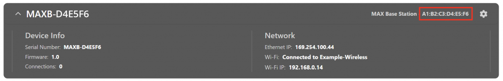 A MAC address is a 12-character alphanumeric ID, typically divided into 6 sets of 2 characters, as shown below: