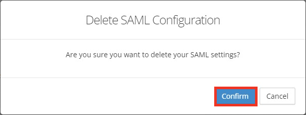 • If you delete your SAML configuration, you’ll see a confirmation dialog box. Select Confirm to complete the process.