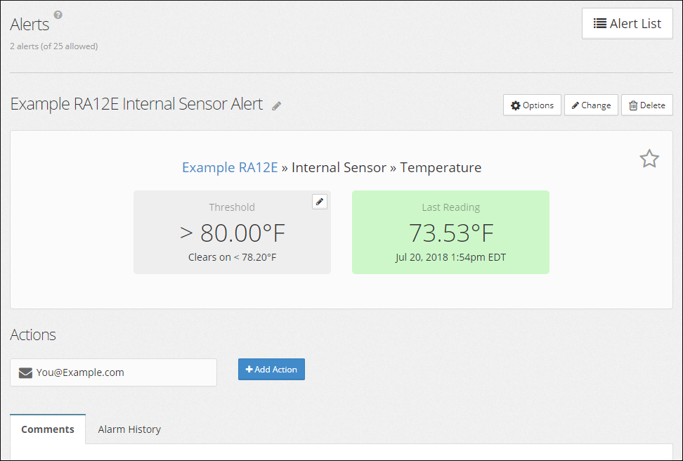 For example, if you have an alert set up to notify you if it gets too hot in your data center, you can also choose to display: