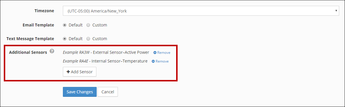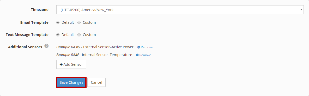 If your organization’s Room Alert Account has been upgraded to the Professional level or higher, you may add any additional sensor readings to an email or text message alert notification.