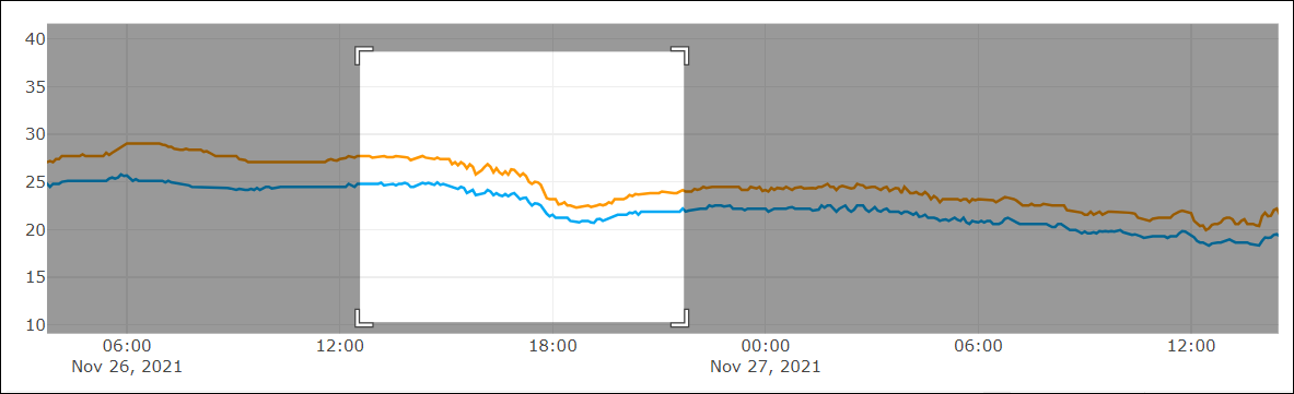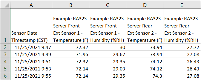 This example graph shows the temperature & humidity readings at the front and back of a server rack.