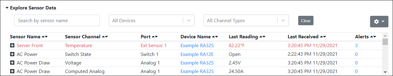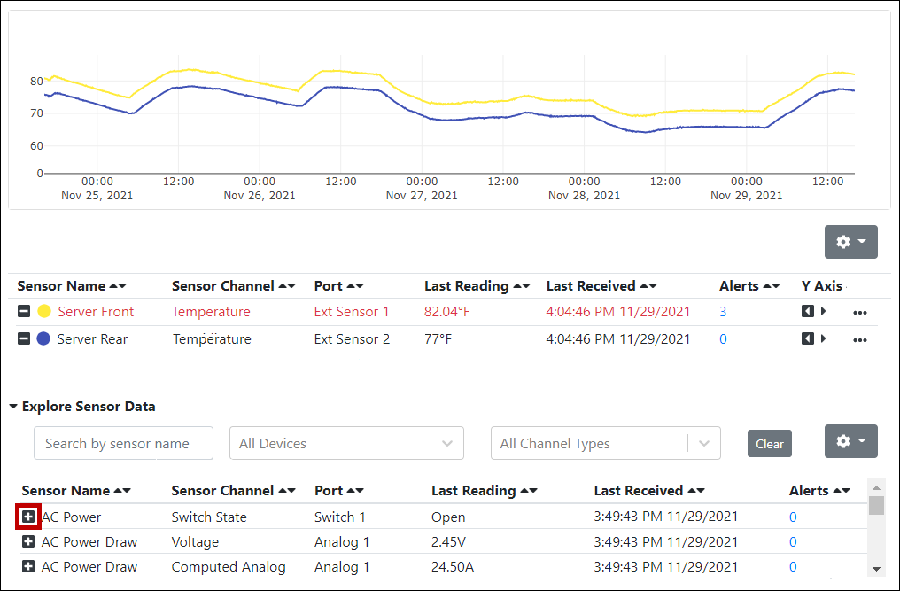 Whether you’re monitoring your Room Alert devices through your RoomAlert.com Account or through the Room Alert Manager software, the Sensor Data & Reports page includes features to: