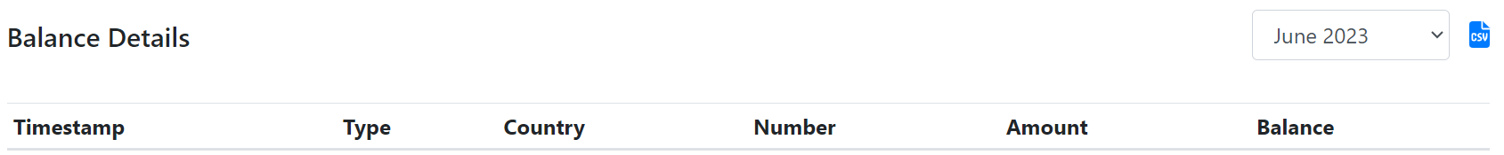 The Balance Details table lists all transaction that affect your organization’s SMS balance.