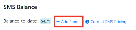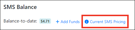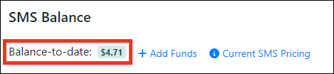 Your organization’s total SMS funds are listed in a blue box toward the top of the tab. In our example, our account has $4.71 to spend on SMS messages.