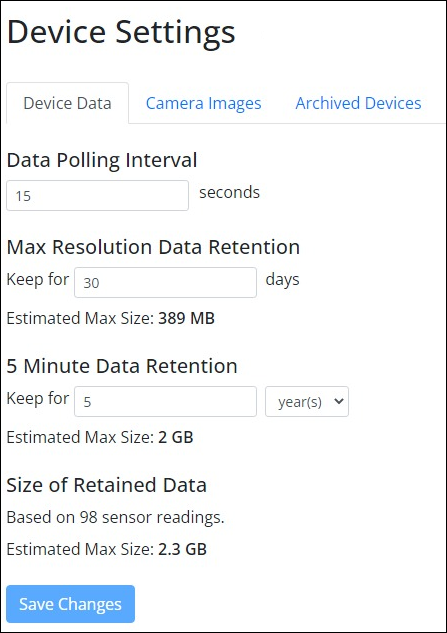 Follow these instructions to view and edit your data retention settings in Room Alert Manager:
