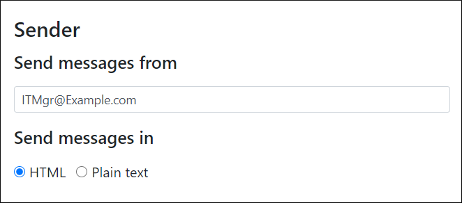 - In Send messages in, you may leave the default option, HTML, or select Plain text.
