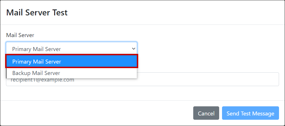 - Choose either your Primary Mail Server or Backup Mail Server (if configured).