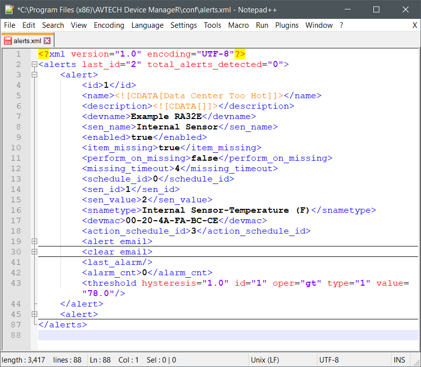 Still using Device ManageR? We recommend switching to AVTECH’s new Room Alert Manager software. Just like with Device ManageR, you may use Room Alert Manager to discover your Room Alert Monitors, configure alerts and export historical sensor data.