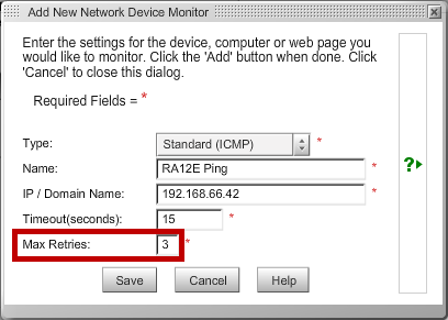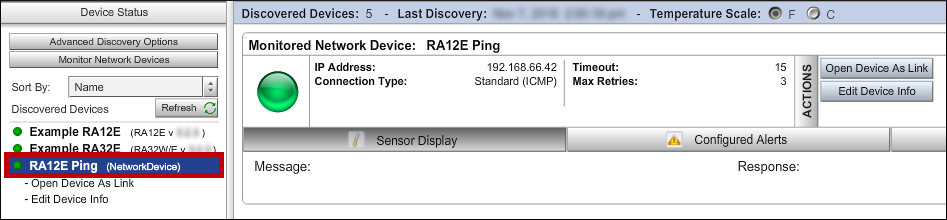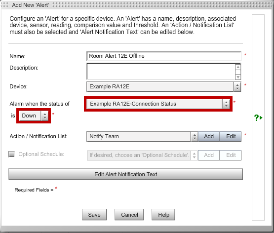 There are three different ways to configure Device ManageR to notify you if one of your Room Alert Monitors goes offline.
