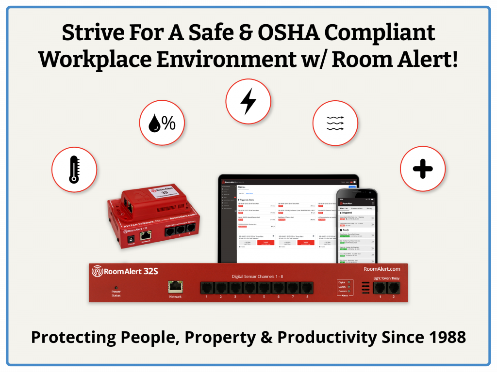 If you have any questions or want additional information on how Room Alert can help ensure your OSHA compliance, please contact us today through email at Sales@RoomAlert.com, through our online Live Chat service, or via phone at 401.628.1600. For additional information, check out more of our articles on Safety & Compliance.