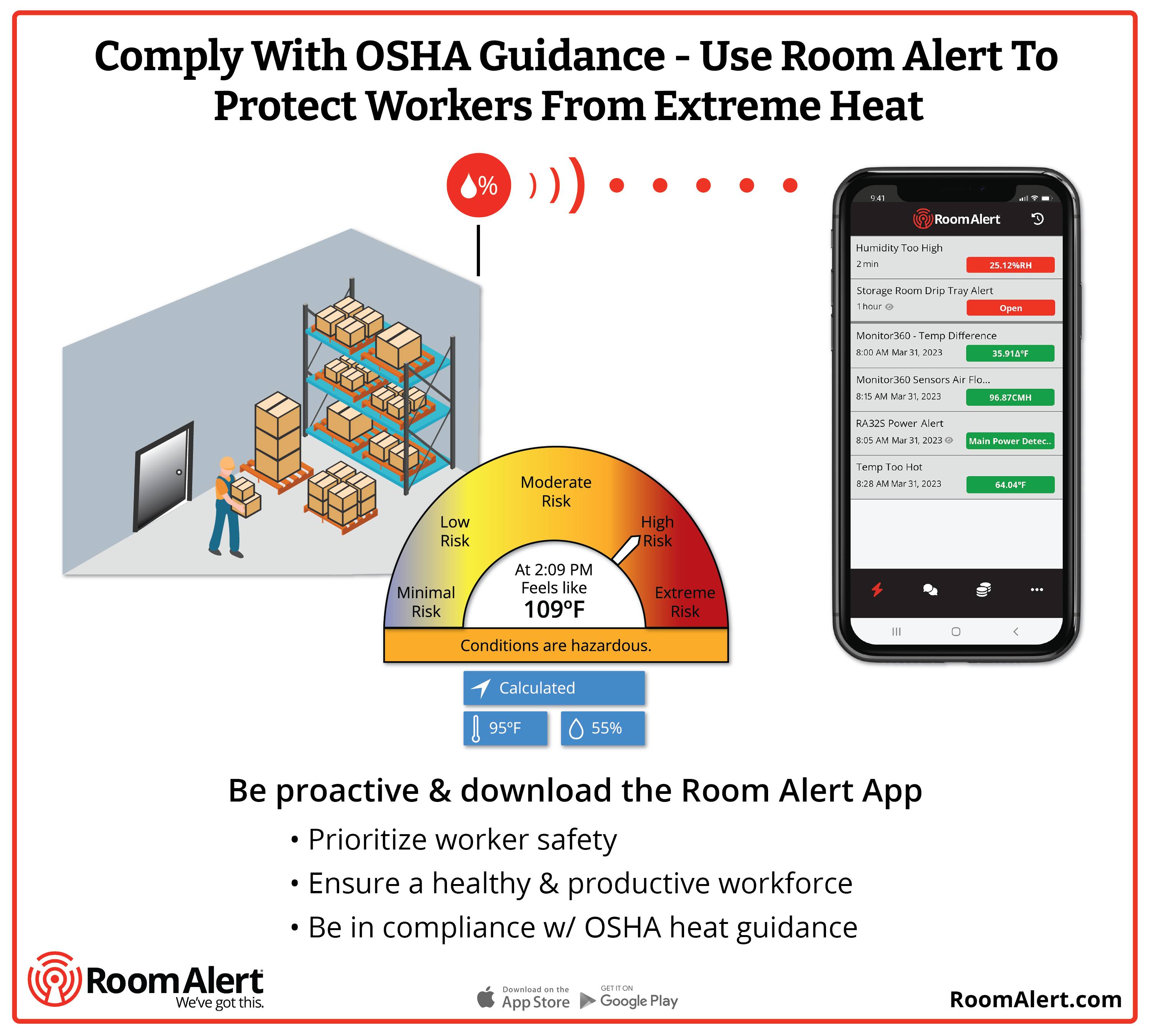 Room Alert environment monitoring can help prevent costly unplanned outages by alerting employers to when extreme heat or other environmental conditions may threaten people, property and productivity.