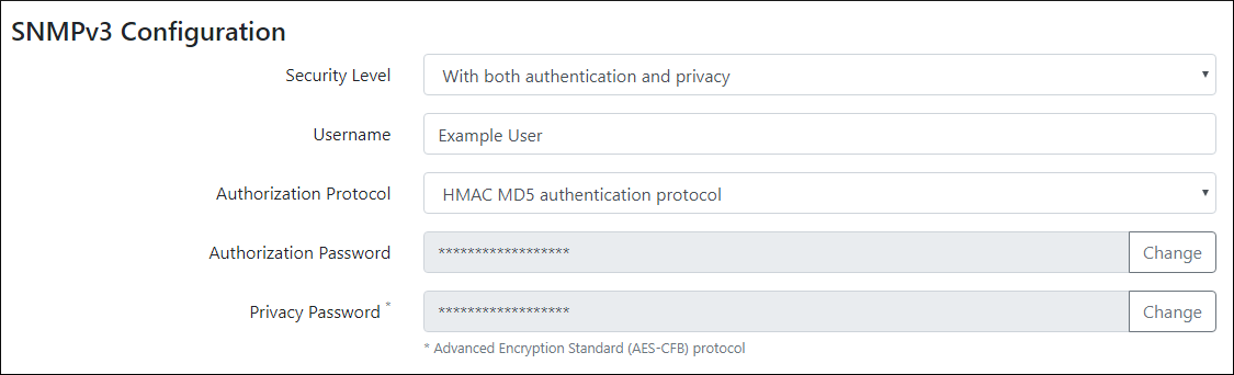 • In Privacy* Password, enter the privacy password that’s configured in your SNMP monitoring program.