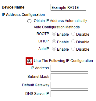 By default, your Room Alert Monitor obtains an IP address automatically using DHCP. You may set a static IP address, if you wish, using one of the following methods: