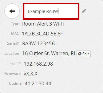 5. To rename the Room Alert Monitor in your Room Alert Account: