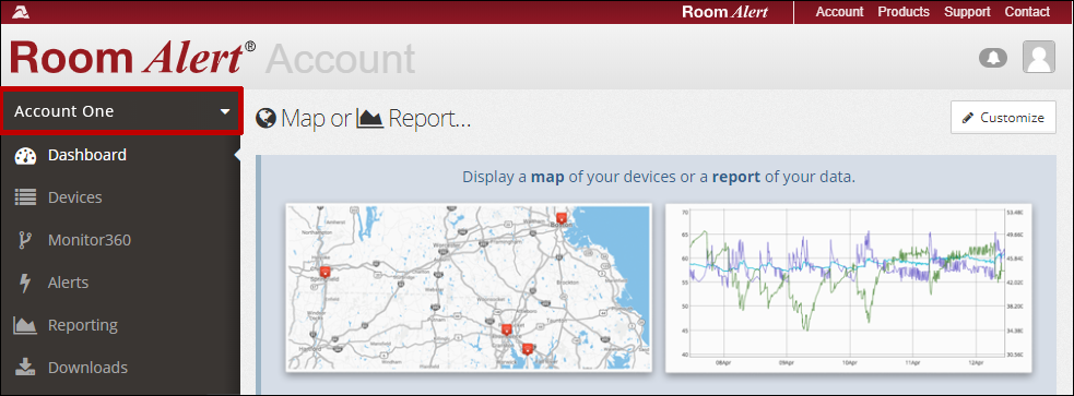 4. Your view will then switch to that account. Depending on your user role for that account, you’ll have access to its devices, alerts, downloads, etc.