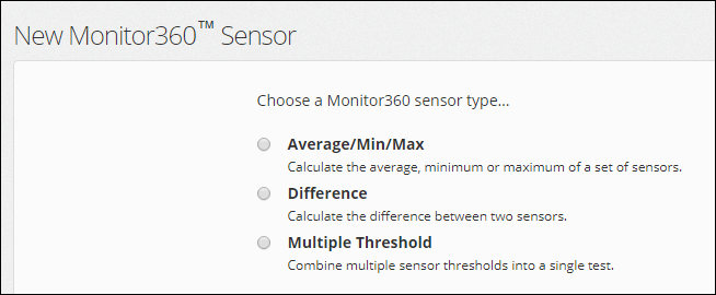 1. Under Choose a Monitor360 sensor type, select Multiple Threshold.