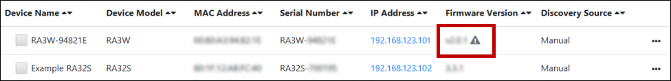 You may initiate firmware updates from Room Alert Manager for the following models: