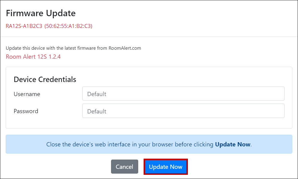 You may use Device Discovery to update these these models. Room Alert ‘S’ models and MAX devices are not compatible with this utility.