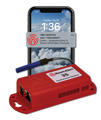 Room Alert PRO delivers dependable wired environment monitoring where uptime and security are non-negotiable. Built in the USA inside our own facilities, Room Alert PRO defends critical infrastructure by instantly detecting temperature changes, water leaks, power loss and other threats that jeopardize operations. When conditions change, Room Alert PRO alerts your team immediately. This keeps systems running, assets safe and productivity uninterrupted
