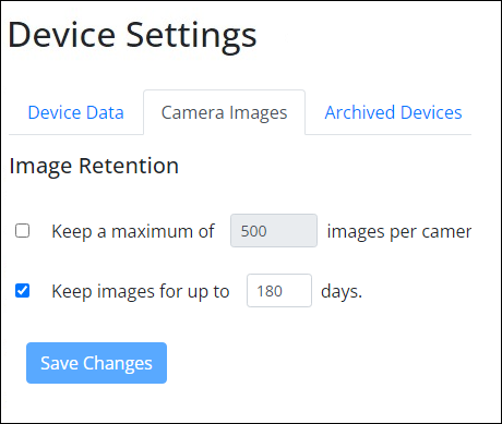 4. The page is split into three tabs: Device Data , Camera Images & Archived Devices.