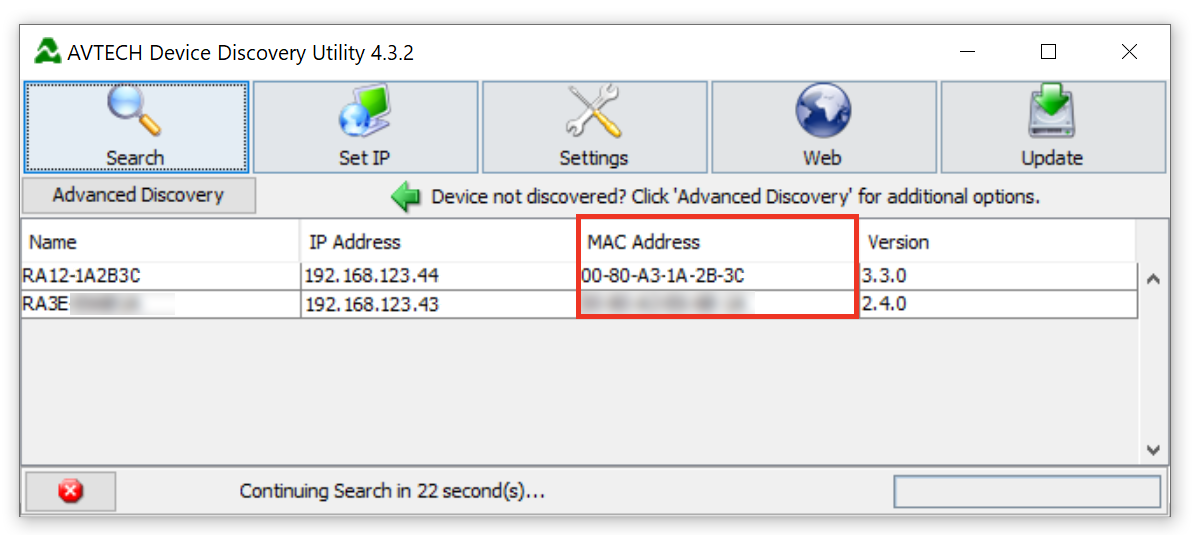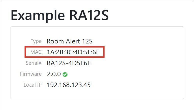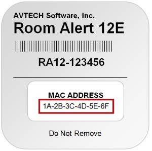 You may need the MAC address of your Room Alert Monitor to perform certain tasks, such as advanced discovery in Room Alert software.