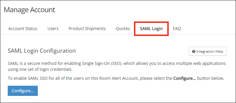 • The first time a user logs in to a SAML-enabled Room Alert Account, they must do so through their IdP’s portal.