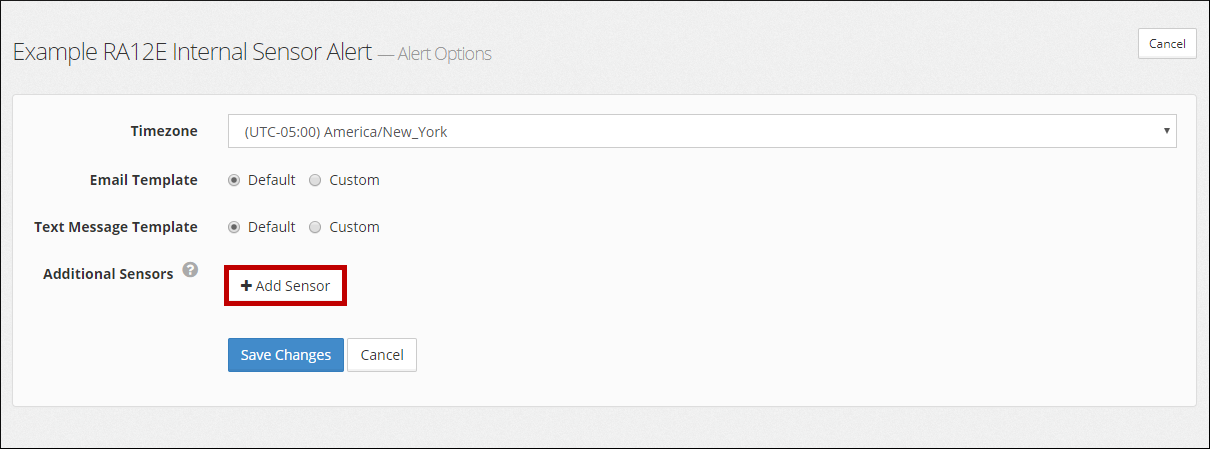 If your organization’s Room Alert Account has been upgraded to the Professional level or higher, you may add any additional sensor readings to an email or text message alert notification.