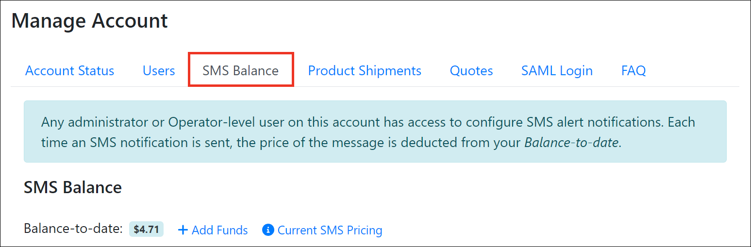 This FAQ shows you how to view your account’s SMS balance, check SMS prices, and add SMS funds. Please follow these steps to get started:
