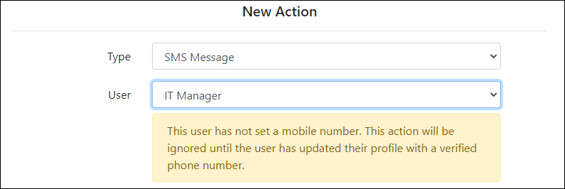 • If you select a user without a mobile number saved to their profile, you’ll see a warning message.