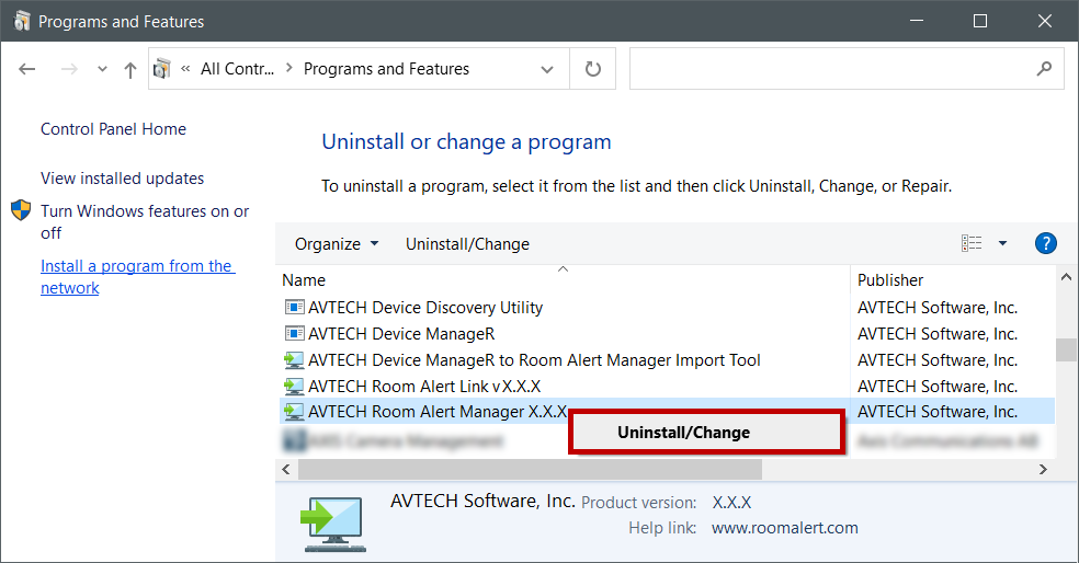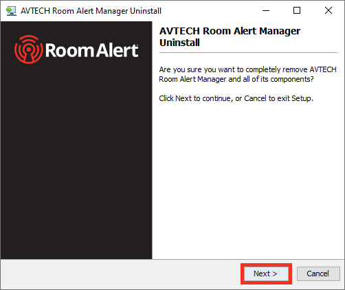 If you wish to remove the program, or you’ve been instructed to do so by Technical Support, you may uninstall Room Alert Manager by following these steps. (Please note that it is typically not necessary to uninstall your old copy of Room Alert Manager before you update – you may simply follow the instructions above.)