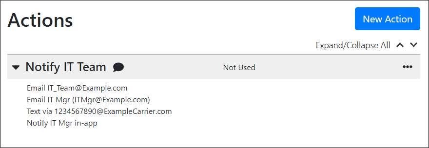 When an alert triggers, all recipients in your multi-line action will be notified at the same time. If you wish to notify some recipients at different times, you must create a separate action for them.