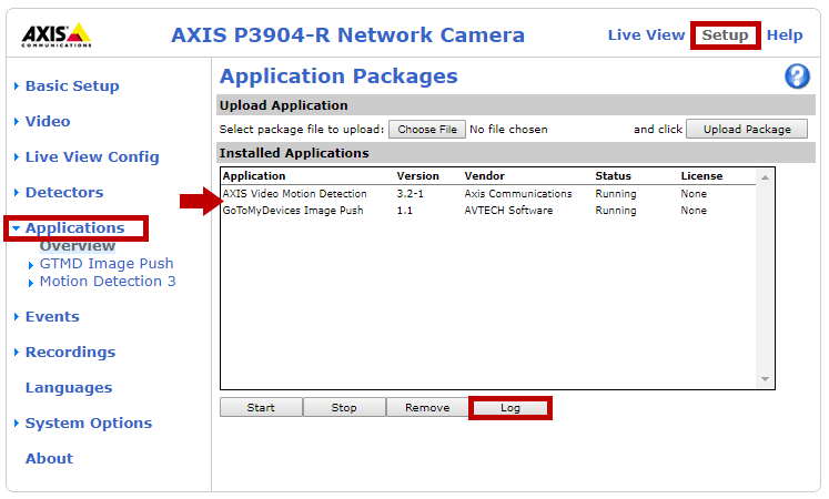– Axis Video Motion Detection application log