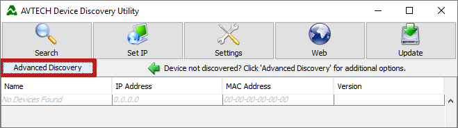 This FAQ shows you how to use Device Discovery to scan for your devices; please see our FAQ How To Discover AVTECH Devices With Device ManageR for information about Device ManageR.