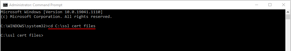 1. First change your directory to the location of your cert.pfx file by entering this command:
