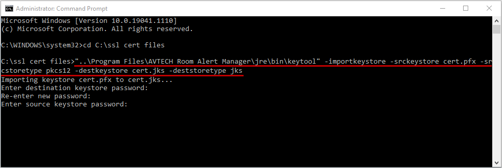 1. After you run the command, the new .jks file should appear in the folder with your cert.pfx file.