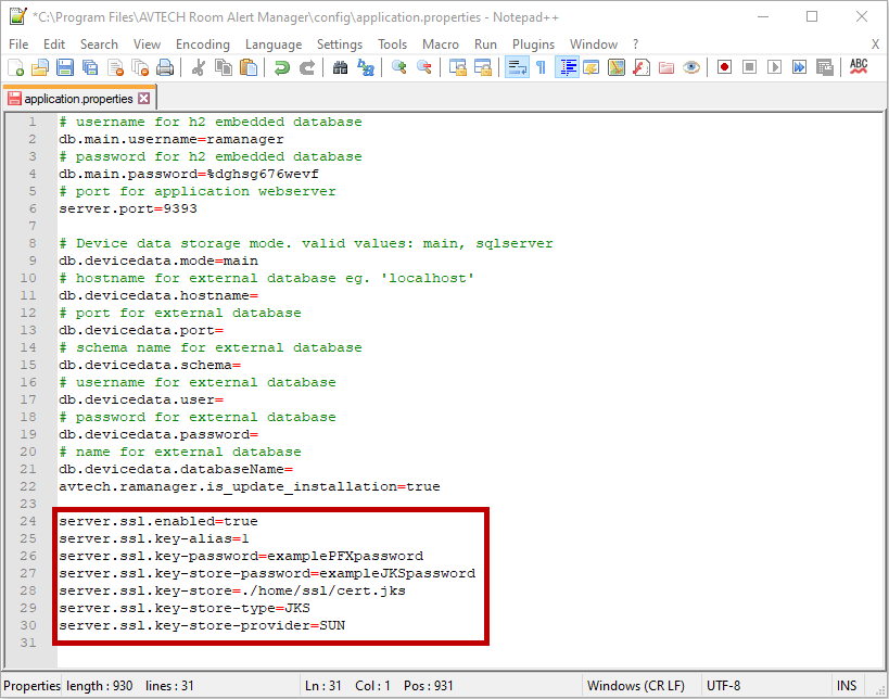 Step 2: Save the JKS file to Room Alert Manager's installation directory.