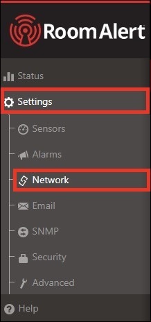 By default, your Room Alert Monitor obtains an IP address automatically using DHCP. You may set a static IP address, if you wish, through the device’s built-in web interface. To do so, follow the steps below: