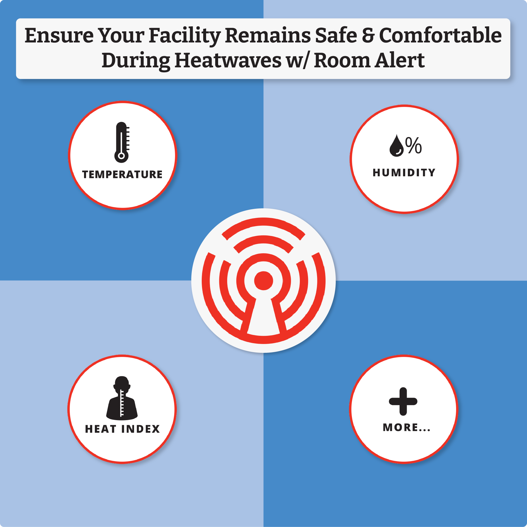 By proactively installing Room Alert in facilities of all types and sizes, you can ensure that indoor environments remain safe and comfortable for occupants during heatwaves. The data collected by Room Alert can be used to inform decision-making about the implementation of cooling measures as well as provide real-time insights to support the health and safety of occupants.