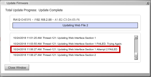 3. If the Room Alert Monitor is discovered (and not grayed-out), try to update its firmware again.